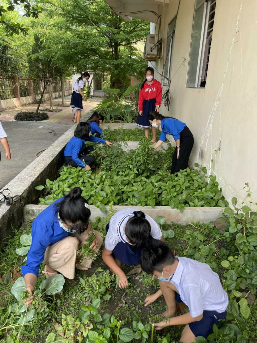 Thực hiện kế hoạch của Chi đoàn, Chi đoàn trường TH Phước Hòa A tổ chức dọn dẹp và trồng cây xanh ở khuôn viên trường học.