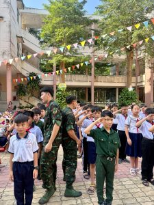 Với tinh thần xung kích – trách nhiệm – tình nguyện, đoàn viên Chi đoàn đã tích cực tham gia công tác tổ chức, điều phối chương trình; phối hợp chặt chẽ với các chiến sĩ Kho A trong việc hướng dẫn học sinh thực hiện điều lệnh đội ngũ, các động tác võ thuật, vũ điệu quân đội, tạo điều kiện để các em trực tiếp trải nghiệm, rèn luyện kỷ luật và tinh thần tập thể.