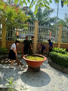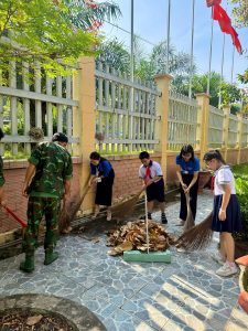 Bên cạnh đó, Chi đoàn và Liên đội còn hướng dẫn học sinh dọn dẹp, vệ sinh khuôn viên Tượng đài Liệt sĩ xã Phước Hòa cũ, chuẩn bị chu đáo cho hoạt động dâng hương tưởng niệm, góp phần giáo dục các em về lòng biết ơn, truyền thống “Uống nước nhớ nguồn”.