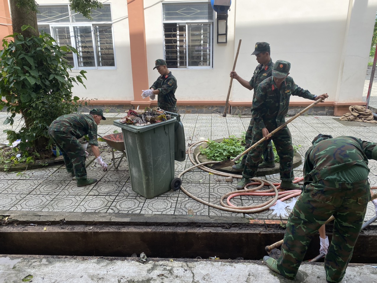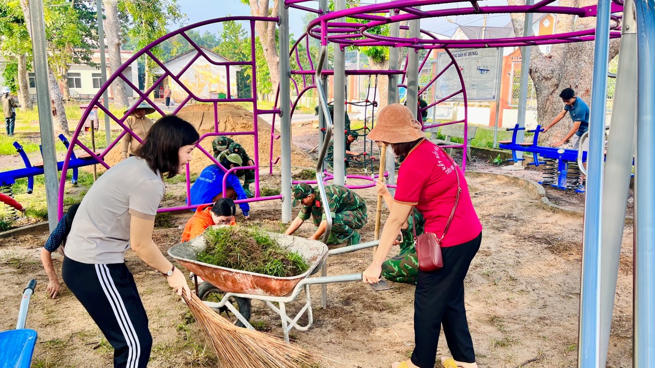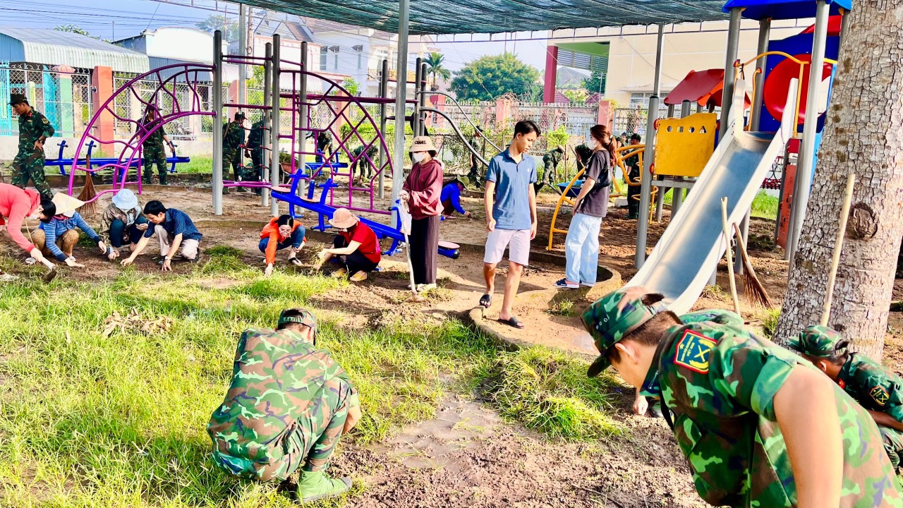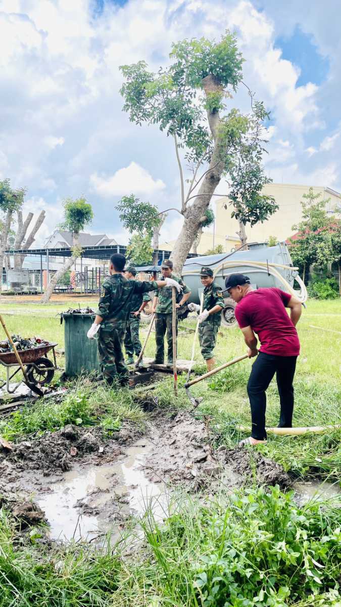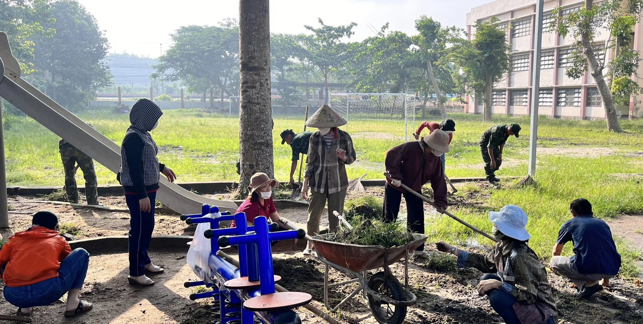 Ngày 14/10/2023, tất cả cán bộ, giáo viên, nhân viên trường TH Phước Hòa A phối hợp với lực lượng chiến sỹ Liên Đội 8 – Lữ Đoàn 429 tham gia dọn dẹp vệ sinh khu vực hàng cây xanh trước cổng trường, dọn rác và thông ống cống khu vực sân trường, dọn cỏ và san đất khu vực vui chơi của học sinh.