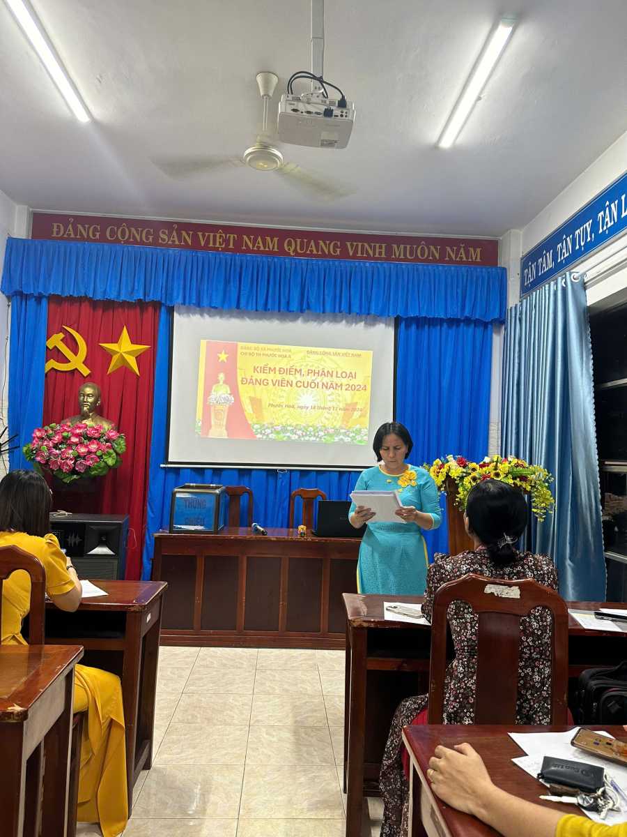 Căn cứ Nghị quyết của Đảng ủy xã Phước Hoà về kiểm điểm, đánh giá, xếp loại chất lượng hàng năm đối với tổ chức đảng, đảng viên và tập thể, cá nhân cán bộ lãnh đạo, quản lí, Vào 16h 50 phút, thứ hai (ngày 18/11/2024), chi bộ trường Tiểu học Phước Hoà A đã tiến hành họp thực hiện đánh giá chất lượng Đảng viên và phân loại tổ chức cơ sở Đảng năm 2024.