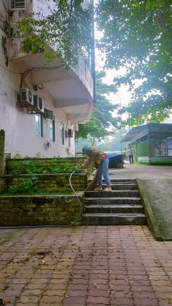 Tham gia buổi lao động có Ban Giám hiệu, toàn thể cán bộ, giáo viên, nhân viên nhà trường. Các công việc chính được triển khai gồm: dọn dẹp khuôn viên trường, phát quang bụi rậm, lau chùi bàn ghế, cửa kính, vệ sinh nhà vệ sinh, phòng học, phòng chức năng và khu vực xung quanh trường học.